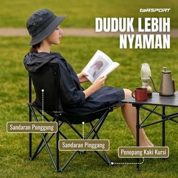 Duduk Lebih Nyaman Kursi lipat ini dilengkapi dengan sandaran yang dirancang ergonomis untuk menopang punggung dan pinggang Anda. Memberikan kenyamanan ekstra, terutama setelah seharian beraktivitas fisik di alam terbuka. |