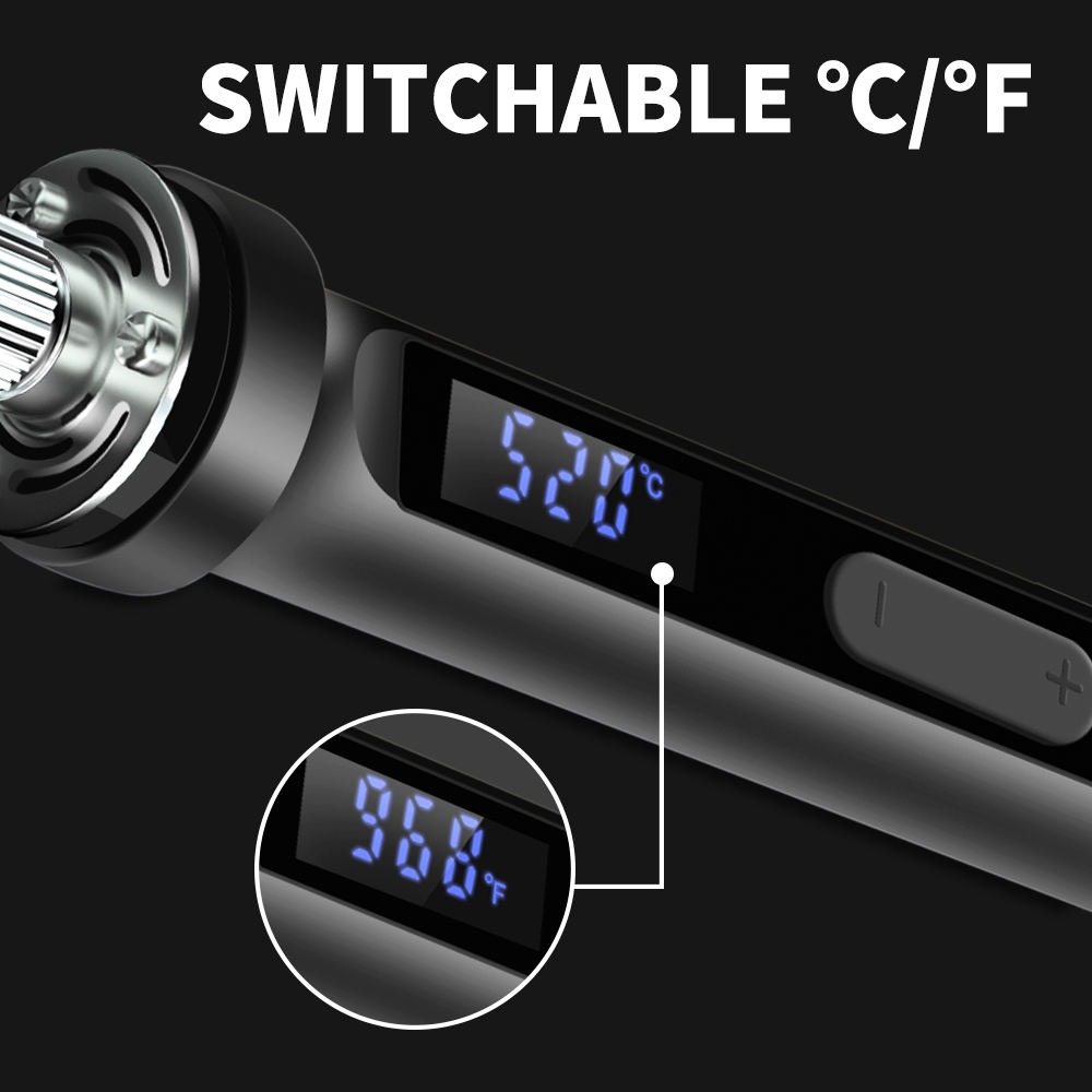 Pengaturan Temperatur Solder Taffware dapat menghasilkan suhu tinggi mulai dari 180 ℃ hingga 520 ℃, jauh lebih fleksibel dibanding solder elektrik biasa. Suhu bisa diatur dengan mudah melalui tombol di bodi solder, sementara layar LCD menampilkan suhu secara jelas dan akurat. Anda bisa menyesuaikan temperatur sesuai kebutuhan proyek penyolderan yang sedang dikerjakan. |