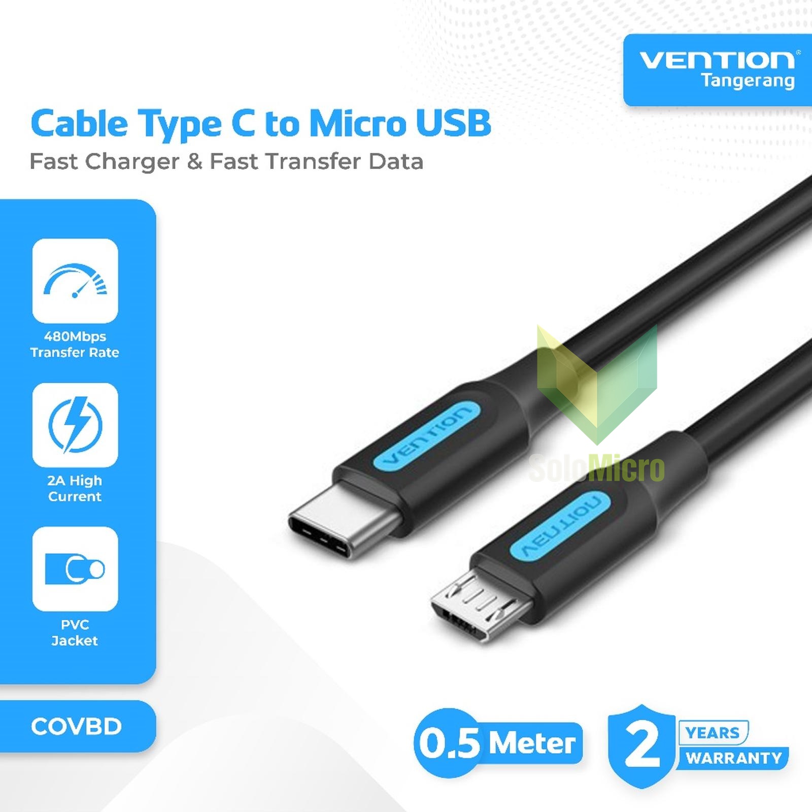 Kabel data VENTION COVBD Type C to Micro USB adalah kabel adaptor yang dirancang untuk pengisian daya cepat 2A dan transfer data antara perangkat dengan port USB Tipe C dan Micro USB.
