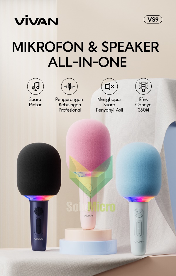 VIVAN VS9 Bluetooth Speaker Portable Microphone Karaoke 360 RGB Lamp Effect TWS Connect